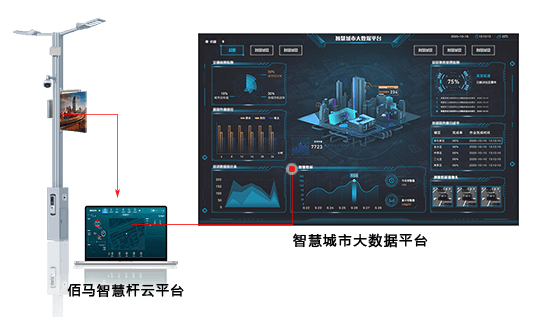平台功能包括:大屏幕数据展示、灯杆管理、路灯控制、环境监测、视频监控、信息发布、网络广播、一键告警、无线AP管理、充电桩管理、网关远程管理、系统管理等。